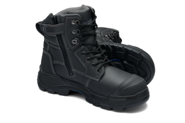 - Black water-resistant nubuck leather upper safety boot—150mm height